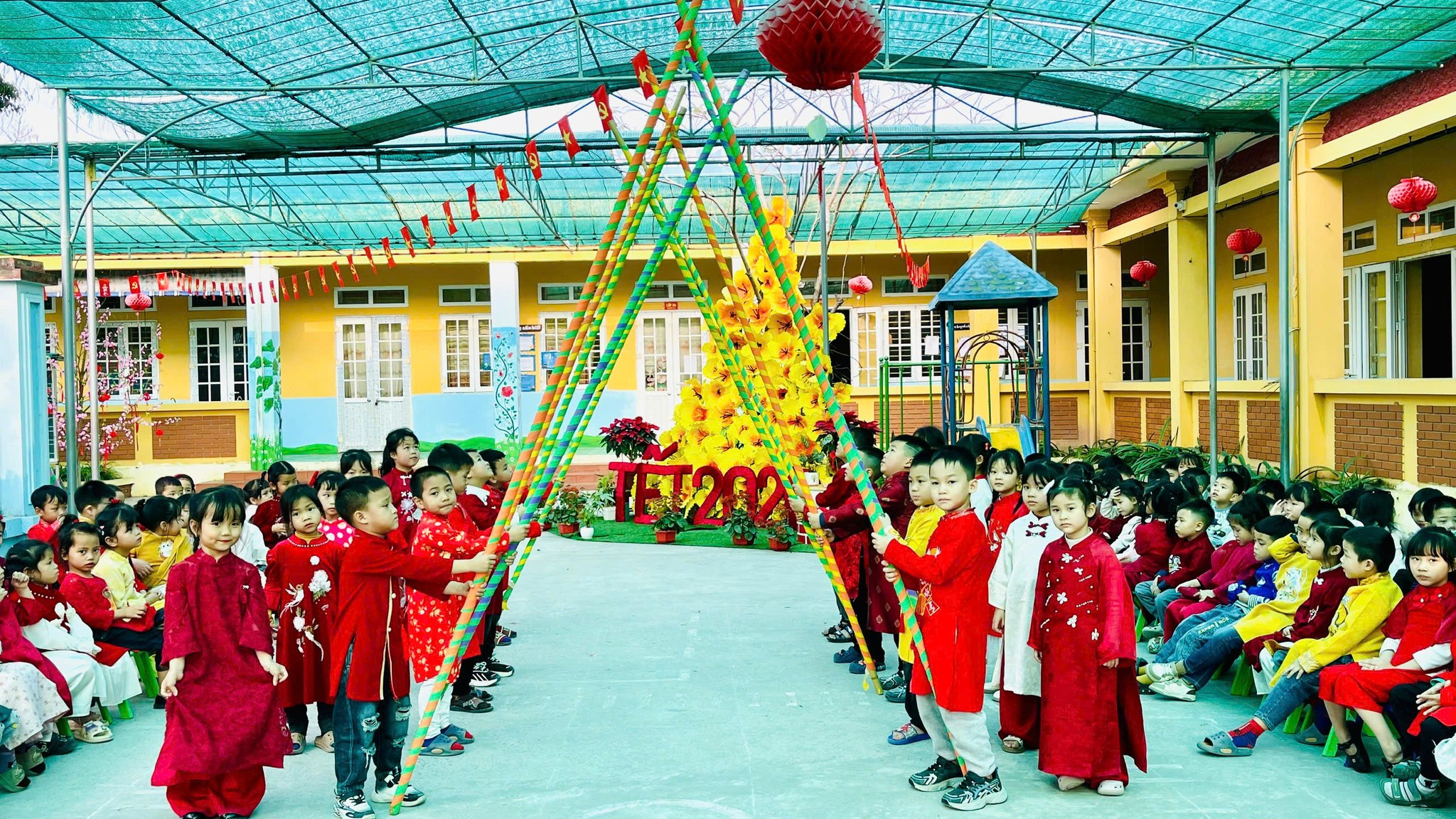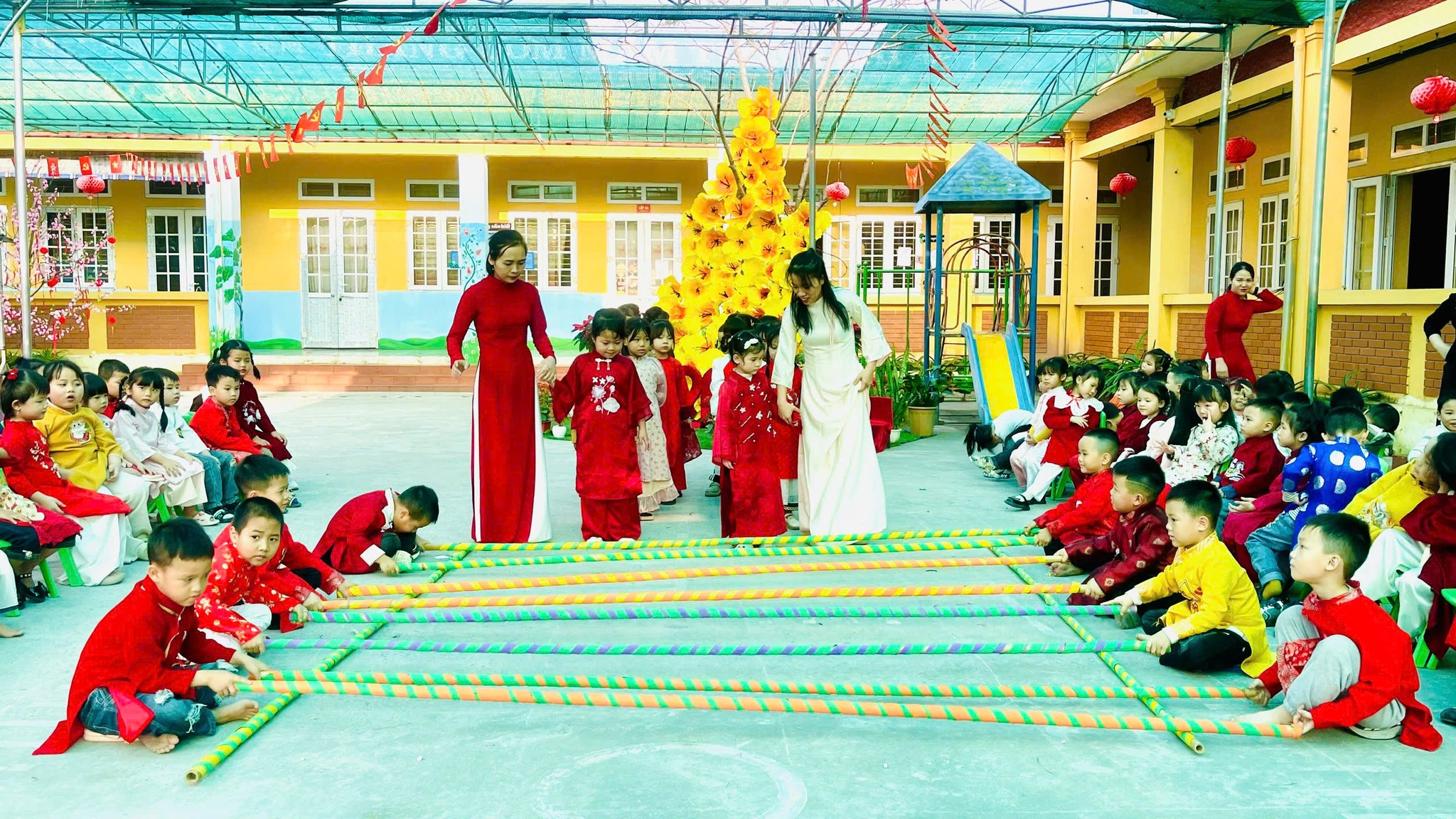 Bên cạnh đó, nhà trường còn tổ chức các hoạt động văn nghệ mừng xuân và các trò chơi dân gian, góp phần tạo không khí đoàn kết, vui tươi; đồng thời giúp trẻ phát triển kỹ năng giao tiếp, tinh thần tập thể và sự tự tin trong các hoạt động tập thể.