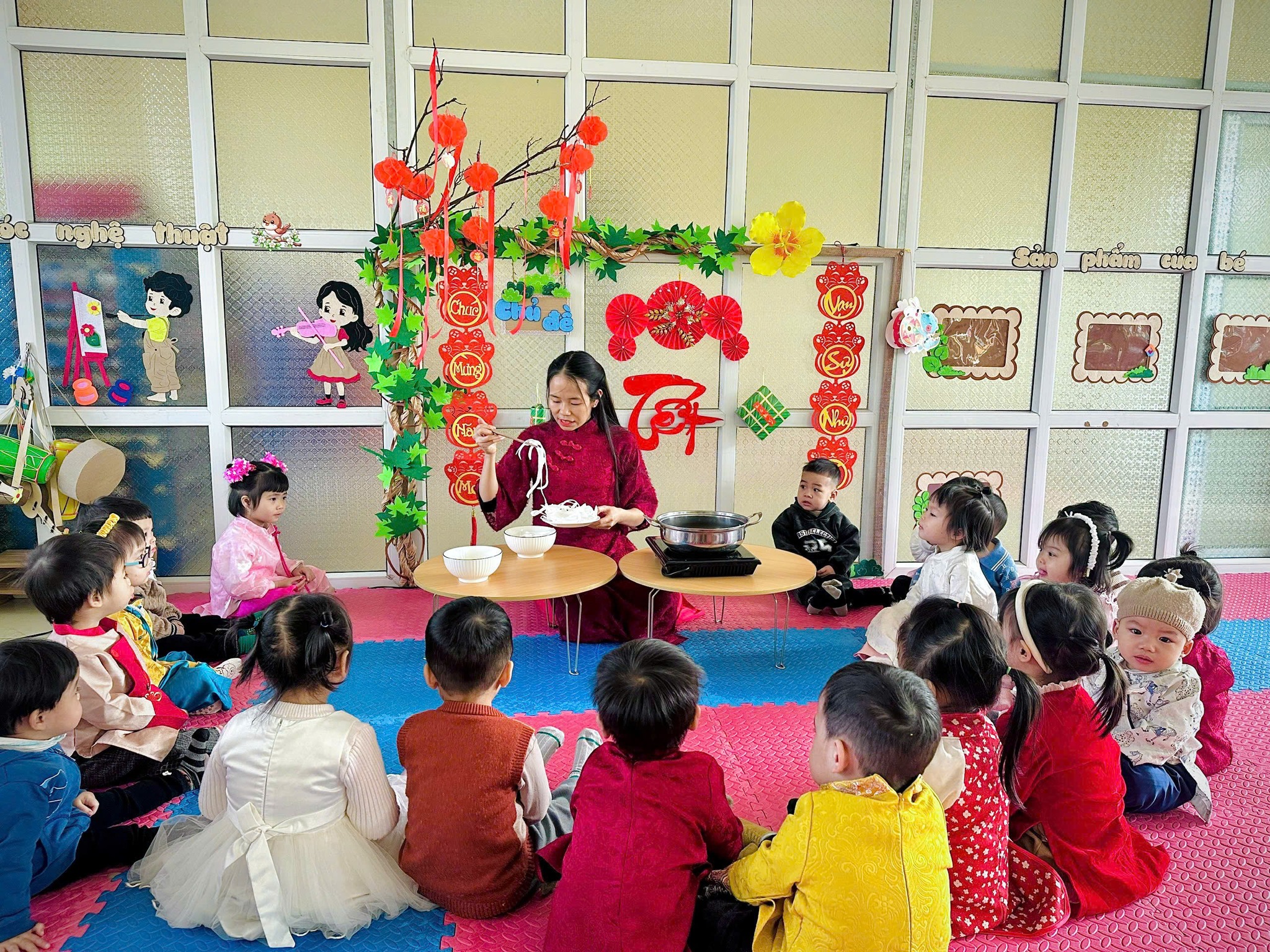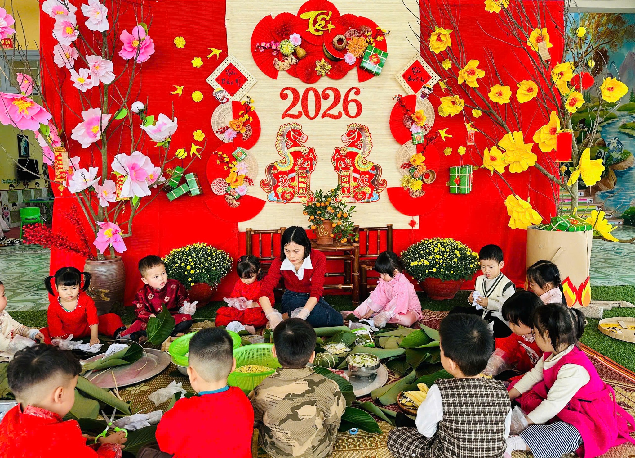 Nhằm tạo không khí vui tươi, phấn khởi chào đón Tết Nguyên Đán Bính Ngọ 2026 và góp phần giáo dục trẻ về các giá trị văn hóa truyền thống của dân tộc, Trường Mầm non Tiến Thắng đã tổ chức nhiều hoạt động trải nghiệm ý nghĩa dành cho các bé trong toàn trường.