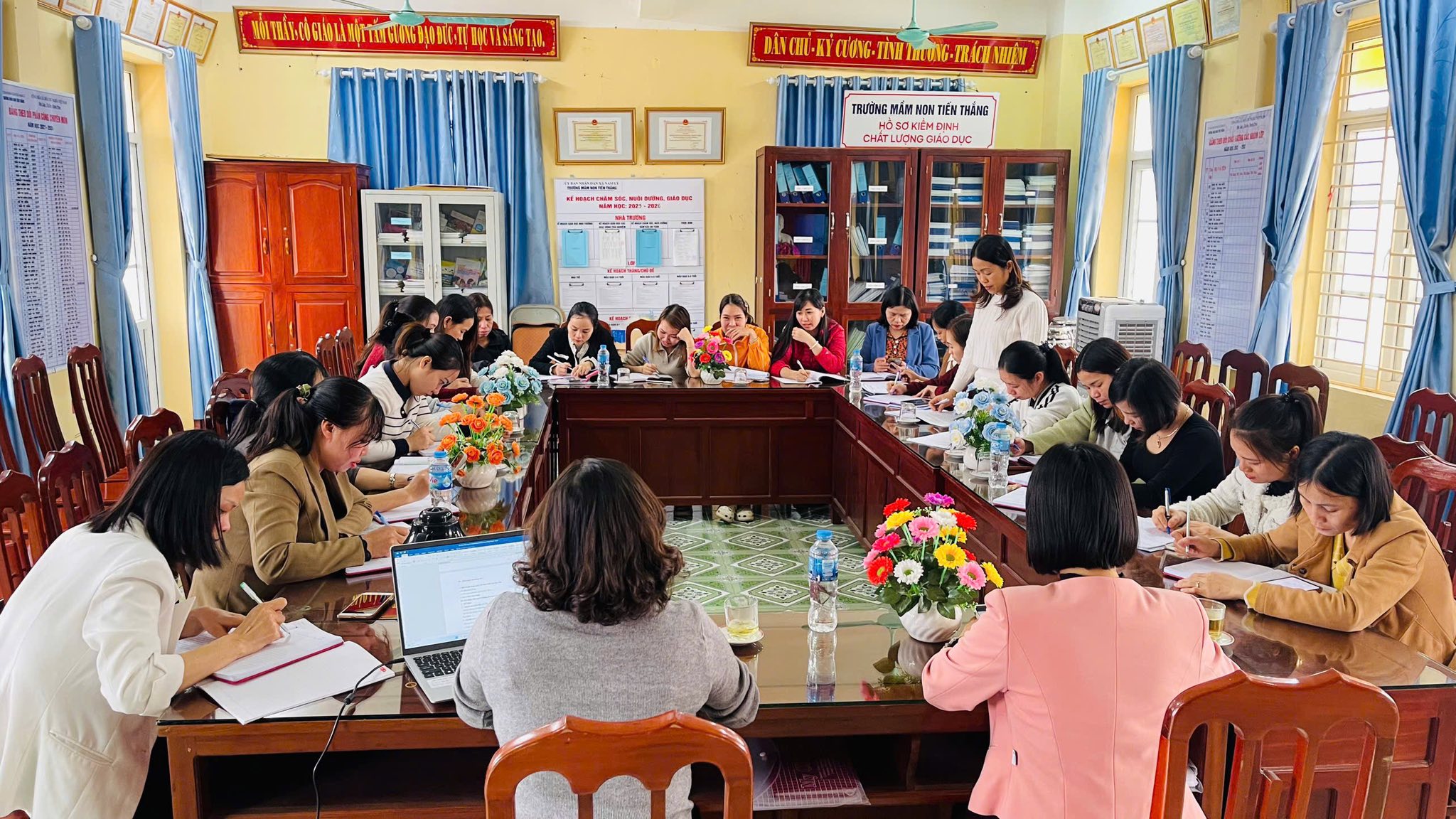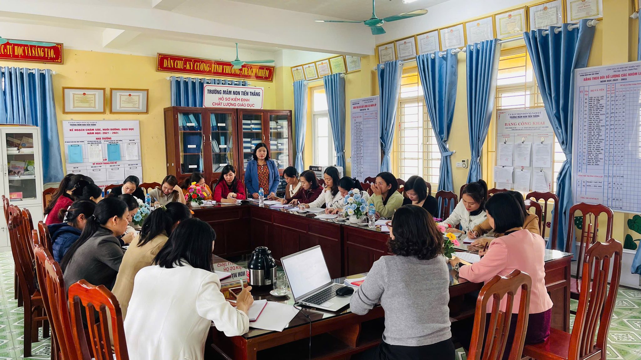Buổi sinh hoạt tập trung đánh giá kết quả công tác tháng qua, triển khai nhiệm vụ trọng tâm thời gian tới, đồng thời phát huy tinh thần nêu gương, vai trò tiên phong của mỗi đảng viên trong công tác chăm sóc – giáo dục trẻ.